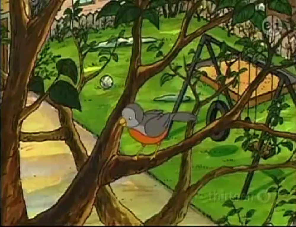 Robins are predators, they eat bugs, and worms. They are a sign of spring, being the first bird to return in the spring. They migrate to warmer climates in the Fall. They are a song bird, making appearance in many background scenes. They made an appearance in Buster's Secret Admirer.