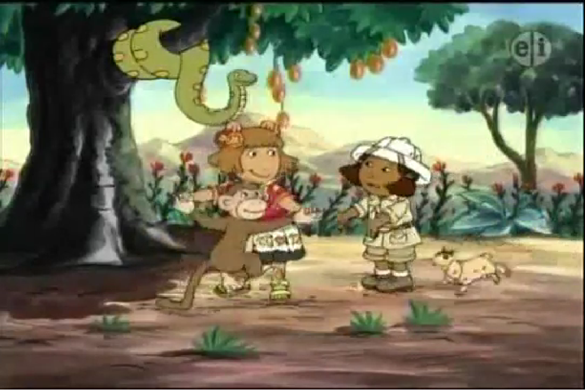 The largest land mammal and herbivore on earth. Male elephants called bulls and weigh up to 24,000 lbs. The males are solitary animals, that means that they live alone. But the female elephants called cows live in families. These families are made up of older and younger female elephants with their calves. They are social animals and have been known to help out other elephants in trouble. They are herbivores and travel great distances to find food. Elephants are protective and will charge at intruders that come near them. Male elephants are also aggressive when in musth which happens when they are in the mood for breeding. The dung of the elephant is made of what it eats because the animal does not digest everything so it comes out the same way it came in. The African elephant appeared in Arthur Writes a Story. But in the episode Arthur's Chicken Pox, they used an Asian elephant.