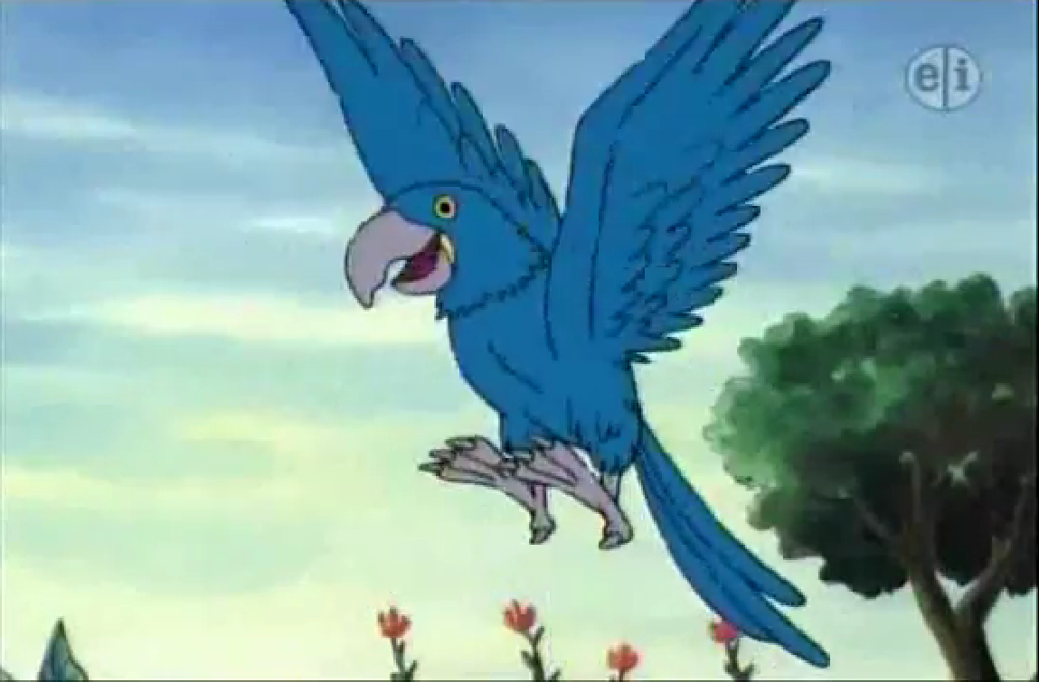 The Hyacinth macaw is a parrot native to eastern and central South America. They are 3.3 feet, it is the largest known Macaw, the largest flying parrot and longer is than any known parrot. It is endangered species due to habitat loss. Its diet is of native nuts and will eat fruit and other vegetable matter. It lives in Palm Swamps, woodlands and other semi-open wooded habitats. It appeared In Buenas Noches, Vicita.