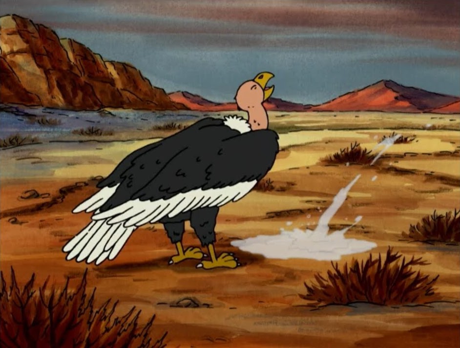 The American crow is found in Elwood City. They are scavengers so they mainly eat the leftovers of other kills. Legends state that crows are bad luck. Crows are pictured as birds of omens in movies in graveyards or creepy scenes. Despite everything stated, the Crow is not a bad bird. Crows have been known to be very smart and communicate with each other with caws over long distance. They made an appearance in What Scared Sue Ellen?.