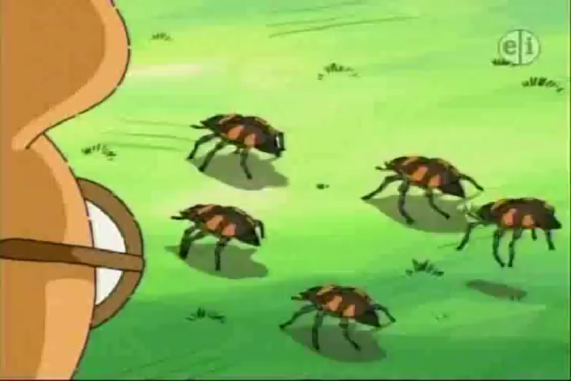 Beetles are a species of insects. They eat fallen trees, therefore helping with decomposition. They are preyed on by birds such as blue birds, woodpeckers and their babies (grubs) by skunks and raccoons. They made an appearance in the opening to The Cherry Tree.