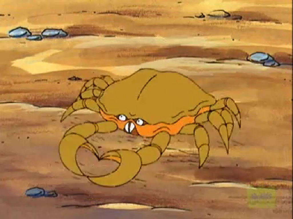 Crabs are crustaceans. It does not have a back bone. You generally find them on beaches. They eat mainly dead things. It is heavily armored creature and posses two pairs of Claws. It can crush predators with its claws. It made its appearance in The Shore Thing.