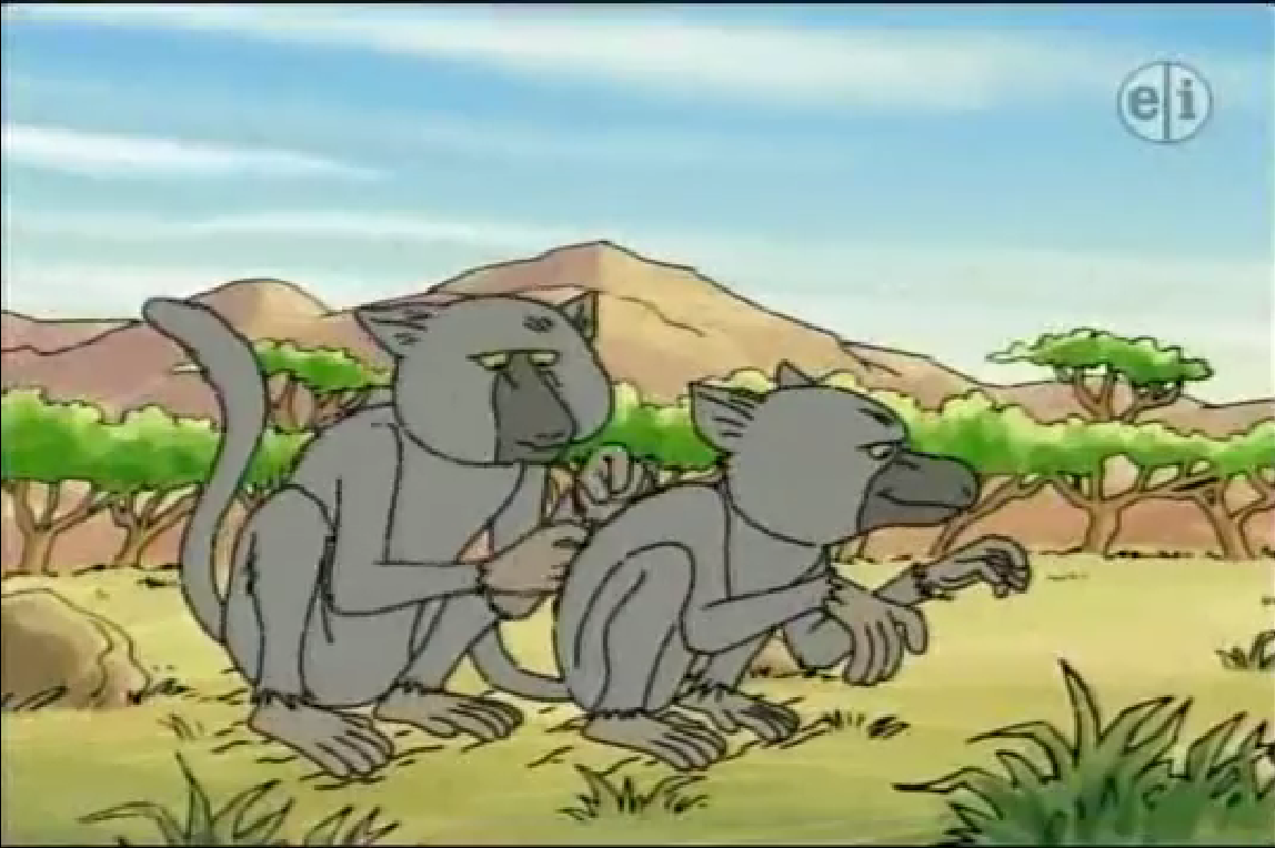 The Baboon is a large Old World monkey. They are a ground dwelling mammal. They are omnivorous, they will eat plants and meat. The Baboon is a social animal. They live in troops in Africa's savanna, hills and open woodlands. They go on food raids. They made an appearance in The Frensky Family Fiasco.