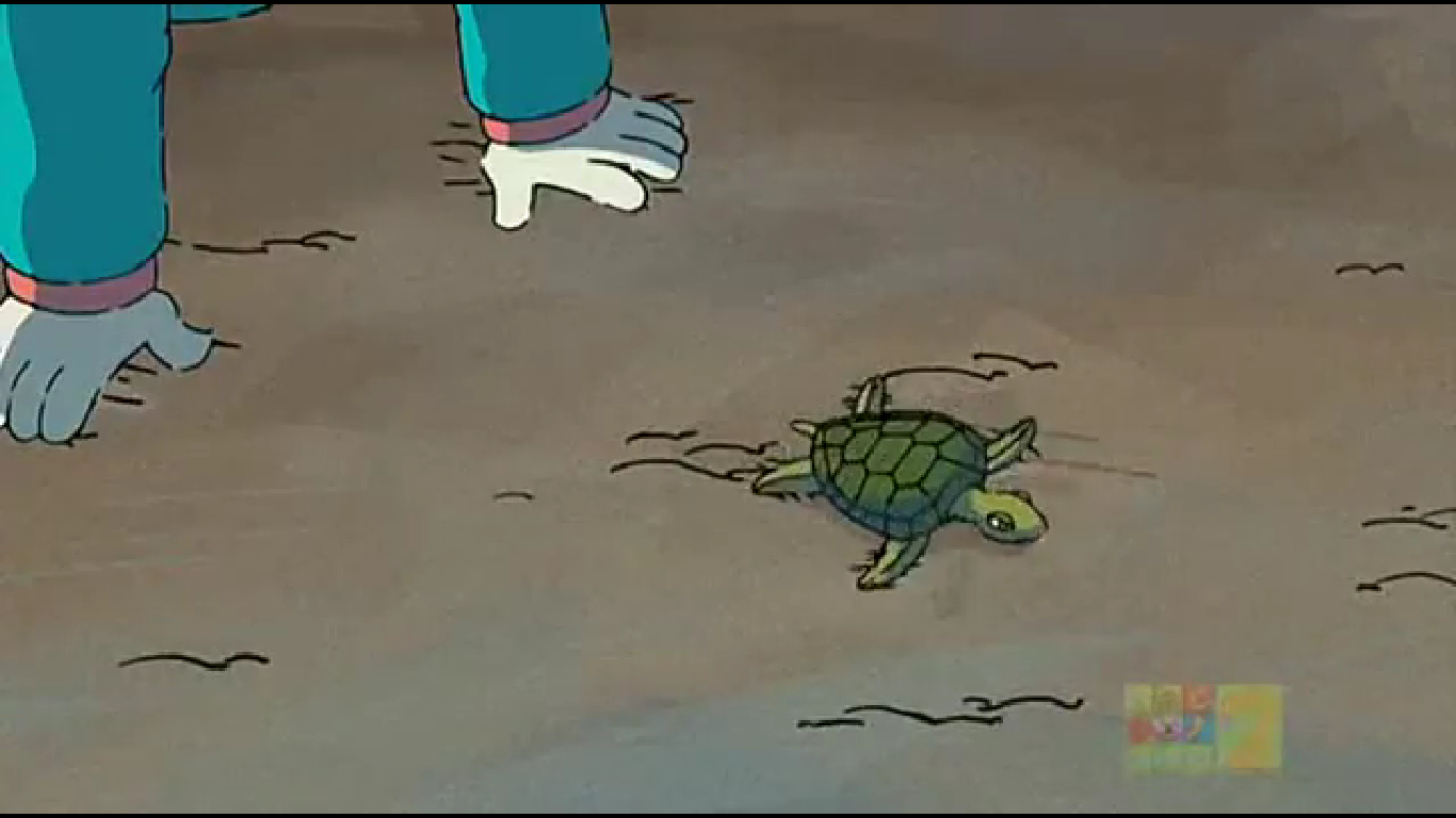 The largest turtle that lives around the Atlantic, Pacific and Indian oceans. The Leatherback sea turtle is graceful swimmer. They eat jellyfish, and sea weed. Their main prey is sharks and humans. They are a threatened species due to hunting for its meat and eggs. The biggest problem to the leatherback sea turtle is garbage such as plastic bags, they mistake them for their favorite food is jellyfish. There most exciting event is their egg hatching which is during the full moon. They made an appearance in Buster Baxter & the Letter from the Sea.