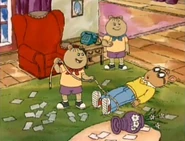 The twins then spot D.W., much to her displeasure and then Mrs. Tibble comes out, wondering where the babysitter went. She is shown to be clearly oblivious or downplaying the twins' rambunctious nature.