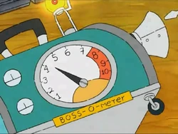 The Boss-O-Meter is a device invented by Brain, seen in the beginning of "D.W., Bossy Boots." Arthur and Brain set out to use the machine to measure how bossy the people around them are. It works fairly well until D.W.'s bossy levels are too high and it explodes.