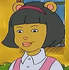 She has a yellow/orange skin complexion, and she wears a white blouse with a pink shirt over it. She has black hair and a similar hairstyle as D.W.'s. She wears a pink headband in her hair and pink lipstick on her lips. She was mean to Muffy, saying "Of course that's what you meant!" sarcastically. She's currently in a relationship with a boy named Robert.[citation needed]