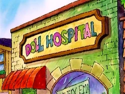 The Doll Hospital is located in Elwood City. It repairs dolls for children. The "doctor" that runs the hospital is Bill. The Doll Hospital appears in the episode "Clarissa is Cracked," when D.W. and her mother go to get Clarissa repaired. When they get to the hospital, they find that Bill is on vacation.