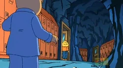 Arthur was launched to the school in "Tales of Grotesquely Grim Bunny." Binky and Brain greet him and offer him a Doom-sicle. The Creepy Mutant Monkey Mole then tunnels through the hallway, and Arthur runs away.