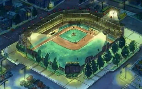 The Elwood City Stadium is a baseball stadium in which the Elwood City Grebes play. It appears in "The Curse of the Grebes" and again in "The Perfect Game." In its second appearance, its appearance differs from its original appearance. It is the location in which the Grebes won their first World Championship in 87 years.
