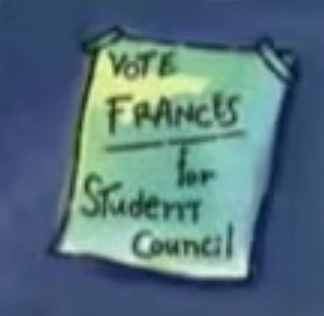 Frances is a character whose name is seen on a student council campaign poster.
