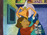 Afterward Francine brings Mrs. Pariso to the tree house and introduces her to Arthur, Muffy, Buster and Brain. Buster states that Mrs. Pariso "looks nice for a witch", but Francine tells Buster that Mrs. Pariso isn’t a witch. Mrs. Pariso then tells them about the time that she met a warlock when she was training in Romania and how he told her how cast a spell on an opponent.