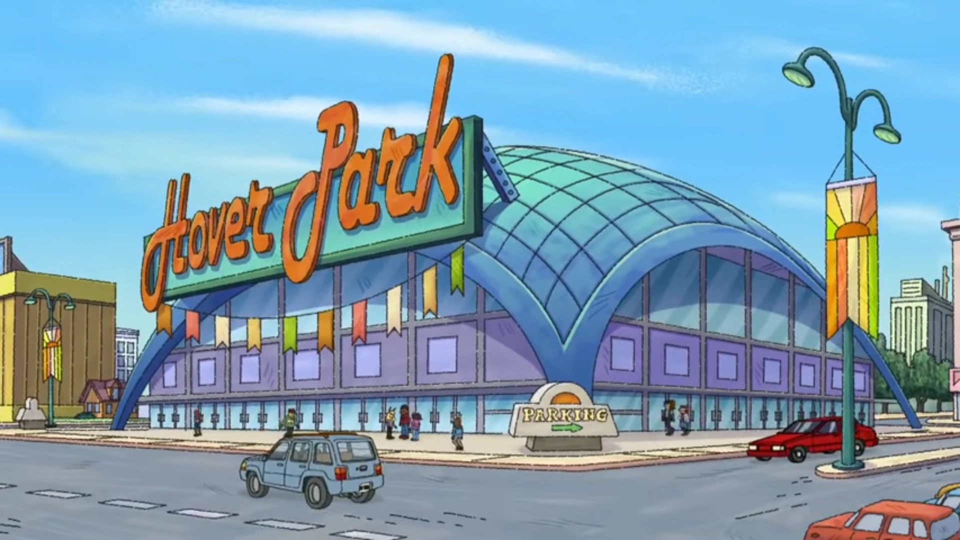 Hover Park was a location in Arthur Read's dream while he was asleep at the Elwood City Planetarium. In his dream, he had been transported four years into the future. It offers simulated hoverboard rides, similar to indoor skydiving simulations. 9 year old Dora has a HoverPass she uses for the ride.