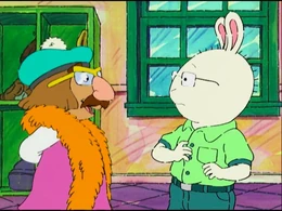 In preschool, D.W. stages a similar scene with her Princess Sneeze-and-Wet doll, returning to her table from the cookies and milk line. James pays no attention to her until she stumbles and falls. Fed up, D.W. tells him that she just wanted a kiss, but she chose the one kid who didn't even notice her. James kisses her on the cheek, then goes to get his cookies off the radiator. Stunned, D.W. realizes she is still herself.