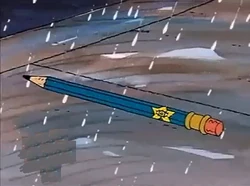 The lucky pencil is a blue pencil believed to give its holder good luck. Arthur found it in "Arthur's Lucky Pencil," and used it as a good luck charm. He eventually decided that it wasn't lucky at all, but when D.W. tricked him into letting her keep it, he took it back from her, just in case.