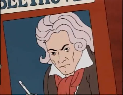 In "Arthur vs. the Piano," Beethoven is seen on a book Buster shows Arthur. Arthur tries to imitate the composer's serious expression, but doing so makes his face hurt. In the same episode, Arthur plays Beethoven's Für Elise at the recital.