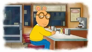 In the first episode of Disney's Doug, "Doug's Last Birthday," his sister mentions he wanted to cancel his 11th birthday because of Doug's unwillingness to move away from his old town and he would have still only had his old friends Arthur and Buster if he had gotten his way. In a flashback, Arthur and Buster with altered designs wave outside of the window of Doug's old room. A slightly different version of the theme song to Arthur plays in the background.