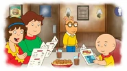 In the fifth episode of season 23, titled "My Dog is My Co-Pilot," Stewie Griffin compares his mother's childhood Easy Bake Oven to the "series finale of Caillou." The scene then cuts to a parody of the crime drama, The Sopranos' series finale. In an art style reminiscent of the Canadian infamous children's cartoon, Caillou, Caillou is sitting at a cafe while other people, including his family and Arthur Read comes in. Arthur seats himself in the patio area of the cafe and then frowns at Caillou while tapping his hands on the table impatiently, suggesting that he is jealous. He then walks to the bathroom with an annoyed expression and the scene abruptly cuts to black. The cut-away may be an allusion to the finale of Arthur and the fact that both Arthur along with Caillou aired on PBS Kids, but also animated by WildBrain. Not to mention that Jane Lynch who guest starred as Patty Ratburn guest starred in Family Guy as Dotty Campbell.