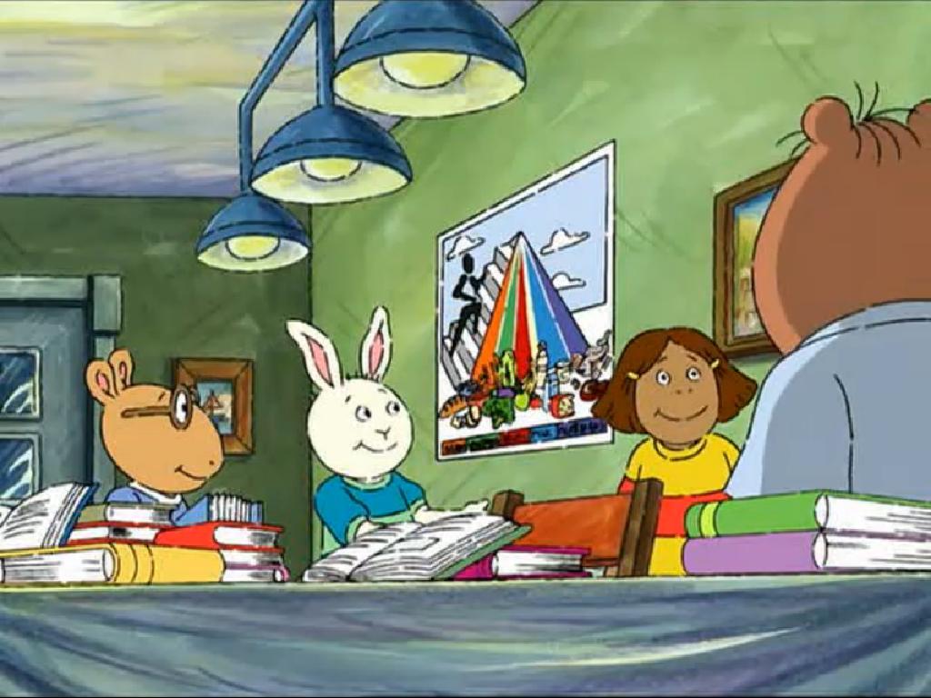 | As a year-end assignment, Mr. Ratburn's class is to find the "ideal food", that is, if they were stranded on a desert island, they'd have to decide on a food to bring an unlimited supply of and why. Alan researches many food items but comes to the conclusion that a variety of foods is the best way to survive. | |||||