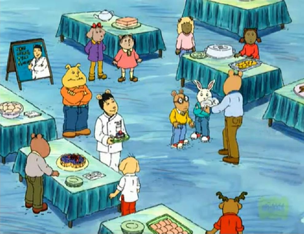 | The big cooking competition is coming up and everyone is making a dish of their choice. Arthur decides to make a chocolate cake. Everything goes wrong when he accidentally uses baking soda instead of baking powder, but he learns making mistakes in cooking may lead to the creation of a new recipe. Ming Tsai guest stars as himself. | |||||