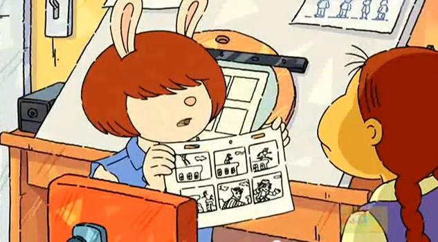 | Freddie K. gives ownership of Meteor Comix to his cousin, Gerald. He makes it horror-themed, so Fern, Arthur, and Buster combine their money so they can get "Grotesquely Grim Bunny." It scares Arthur and Buster, but Fern likes it. | |||||