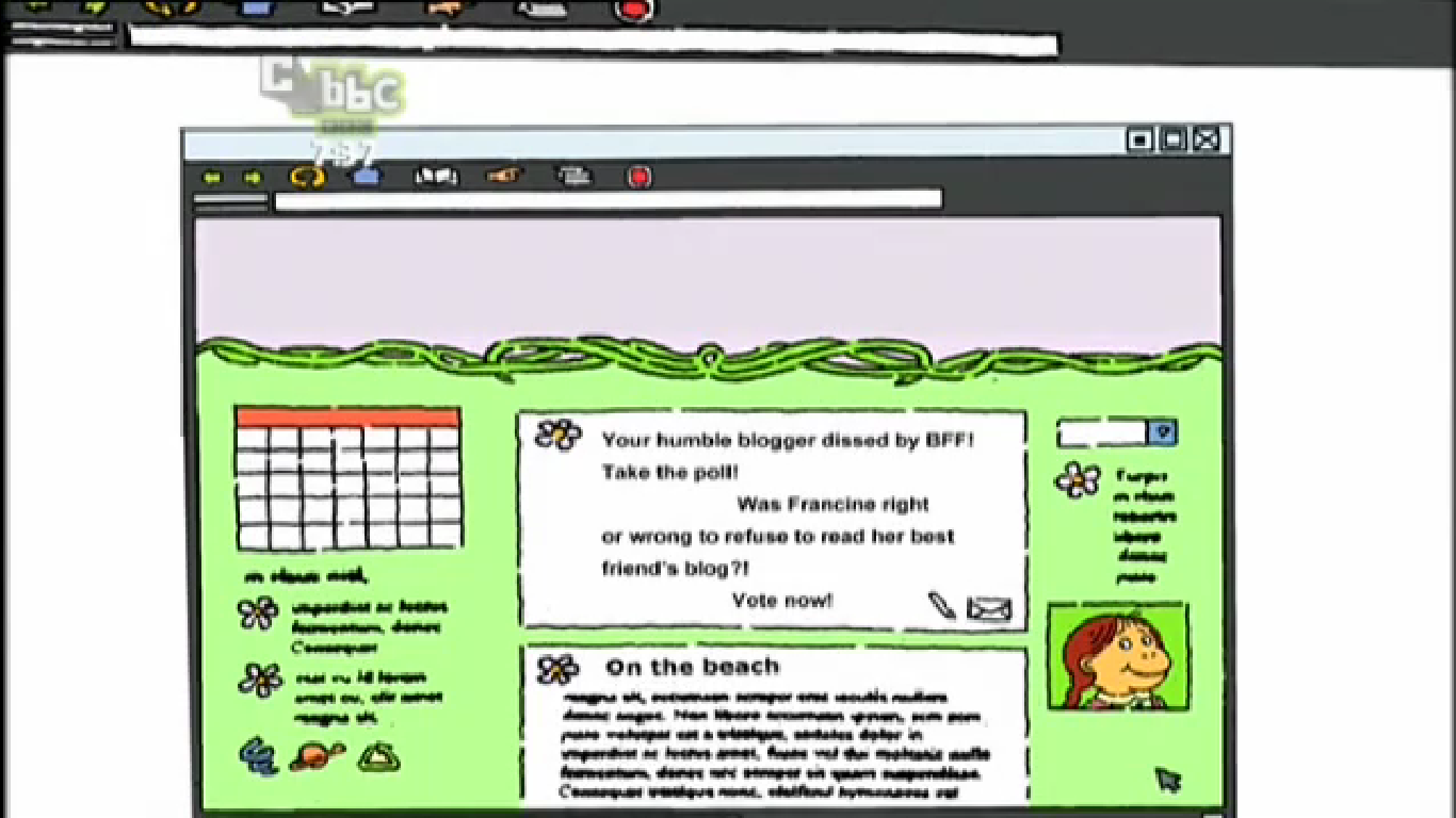 | Muffy becomes addicted to blogging after chronicling her holiday to Costa Rica on her blog. However, after Francine suggests she should spend less time gossiping about everybody, they begin feuding online. | |||||