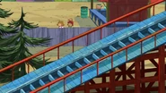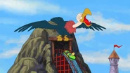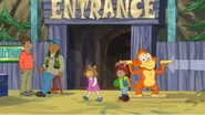 The Buzzard is a roller coaster ride at Wonderworld. D.W. and Bud really want to ride it and try to get on, despite not being tall enough. Ladonna says that The Buzzard is as high as a skyscraper and is for kids in astronaut school. Arthur thinks it's just another ride for kids. Bongo measures the height for this ride. "D.W. & Bud's Higher Purpose"