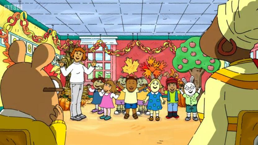 Arthur's friends do not believe that the pageant can be so bad, until he tells them about the fall pageant. The preschoolers performed a song called Autumn Leaves, which caused him to count the tiles on the ceiling twice.