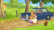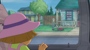 As they drive on, Arthur is anxious to see his cousin Ryder. D.W. wonders why Buster is coming along since he is not family. This hurts Buster’s feelings. Mr. Read swerves because a raccoon is crossing the road, and Buster’s bag falls off the roof. D.W. sings the song “I’m Bored”.