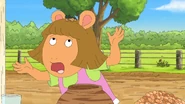 Aunt Minnie runs after D.W. when D.W. complains about no one paying attention to her. Minnie then tells her that being in a family means that you are an important part even if no one is paying attention, as she relates very well with her running away. They hear a screech from the llama stables, and D.W. runs to get Miles.