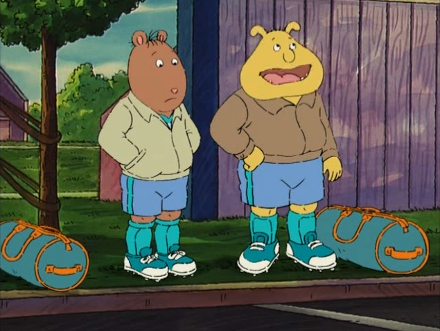 After the game, Brain, Arthur and Binky walk off the field. Brain holds his broken watch.